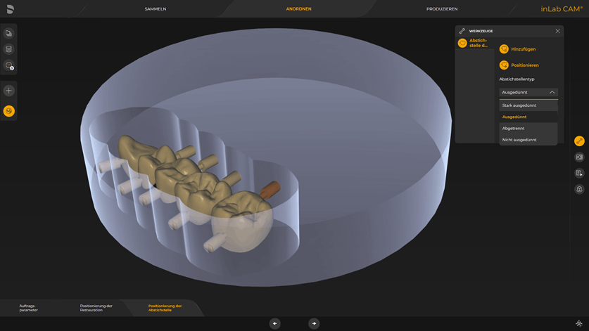 · Übergabe an die inLab CAM Software und Erläuterung der verschiedenen Fräsprozesse (ein- und zweistufig)