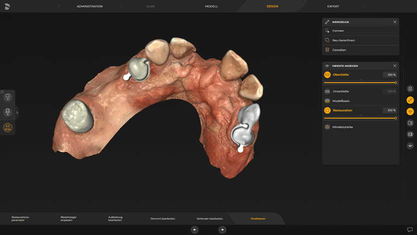 Digitales Wax-Up, Geschiebe, Stege, Teleskope